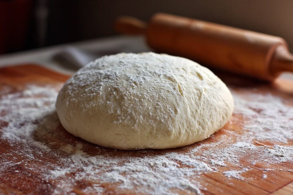 - Shape the dough (3 to 5 minutes). On a lightly floured surface, press the dough from the center outward, leaving a thicker rim. Stretch into a 12-inch (30 cm) round. If it springs back, rest it 5 minutes, then stretch again.