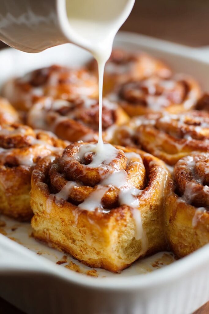 Absolutely. Swap the glaze for a mixture of cream cheese, butter, powdered sugar, vanilla, and a splash of milk. Spread it over slightly cooled rolls so it stays thick and creamy.